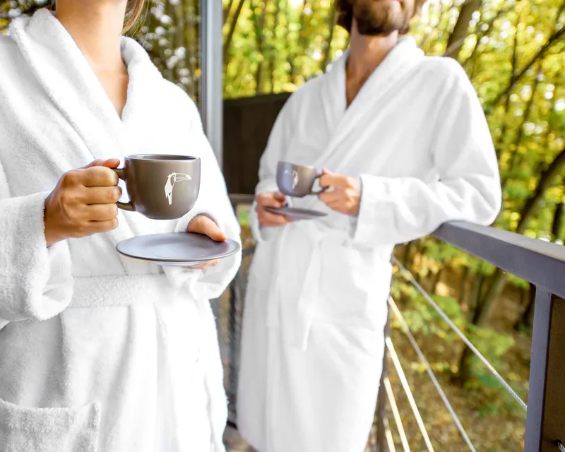 - Bottle of sparkling wine, firewood basket, bathrobe,slippers